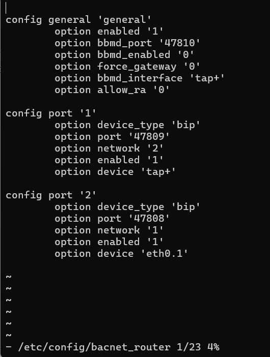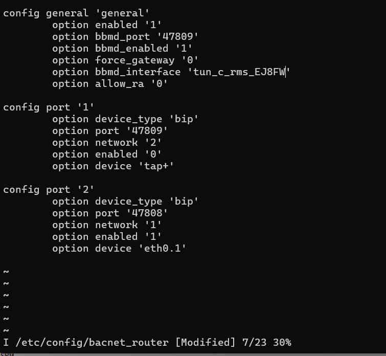 But i can’t connect to a siemens PXC100-E-D using the BACnet Router package. Only way is to use the udp broadcast relay package with command udp-broadcast-relay 1 47808 eth0.1 tap+