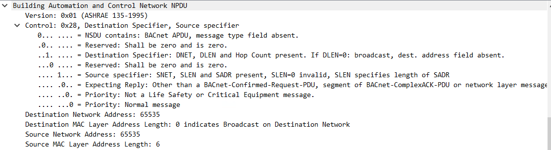 Packet from teltonika(example shown here is over bbmd, when using only bacnet router function the source network address is one configured in bip, for example for my config of TAP vpn the source network address would show 2):