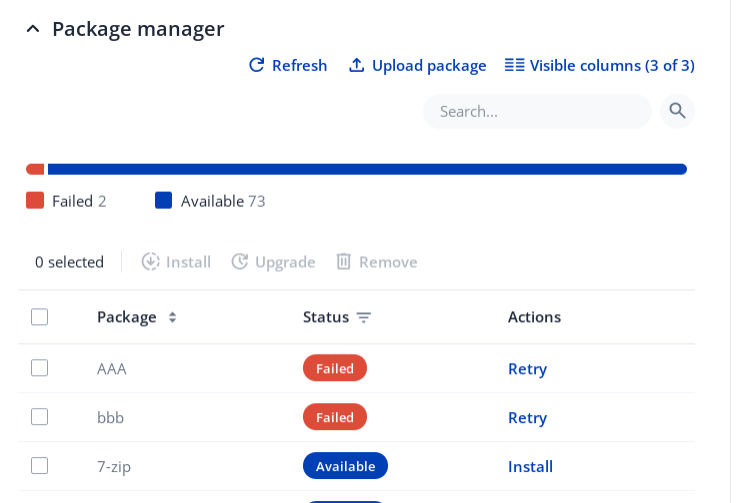 which I can upload via web interface Package Manager → Upload package. This will install the tarball and all .ipks, but when I reload the page the manager shows each .ipk as a singular item:
