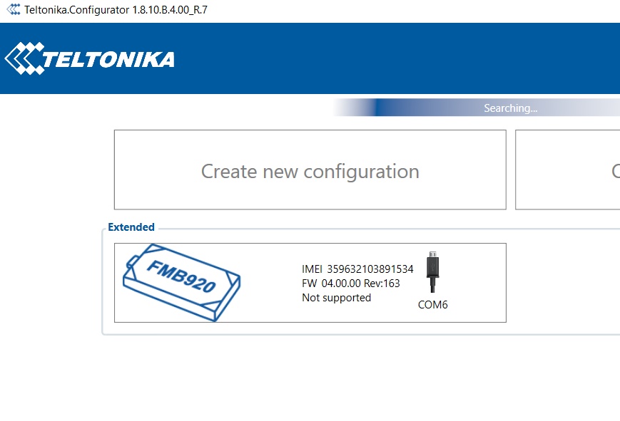 I recently purchased a FMB920, but cannot connect to it via the configurator. Attached is a screenshot showing that the device is “not supported”
