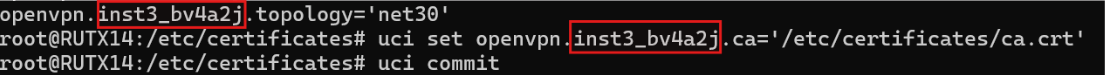 uci set openvpn.<instance_id>.cert='/etc/certificates/client.crt'