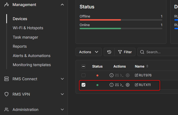 Remove the RUTX8 temporarily from RMS and add it back.