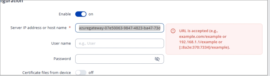 Second issue is the Server IP address or host name field, since Azure SSTP provides a end point URL, this field on RUT seem like it does not like the extended long URL: