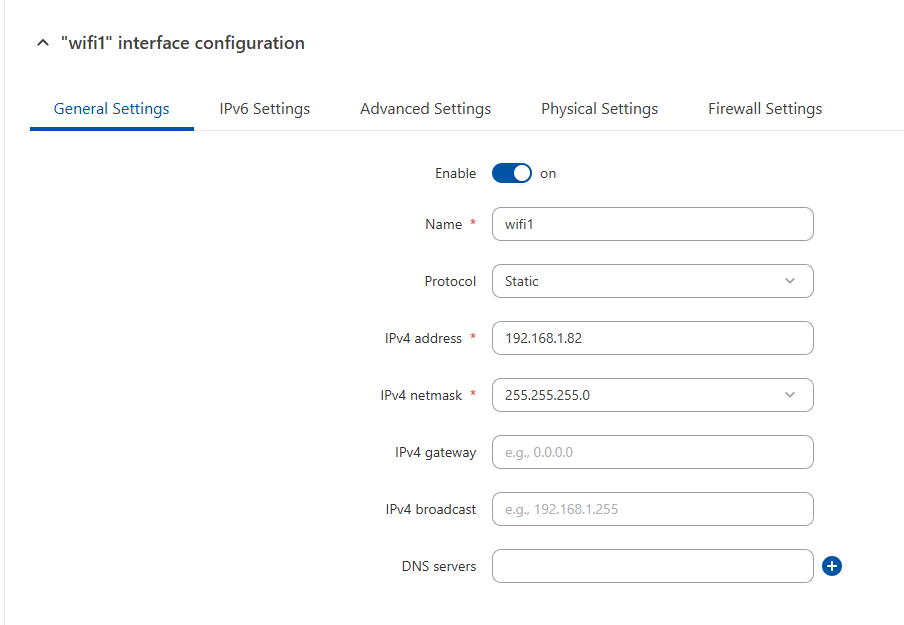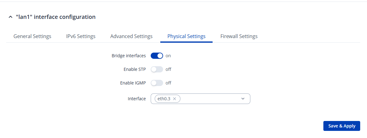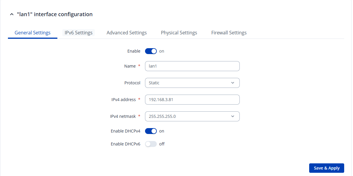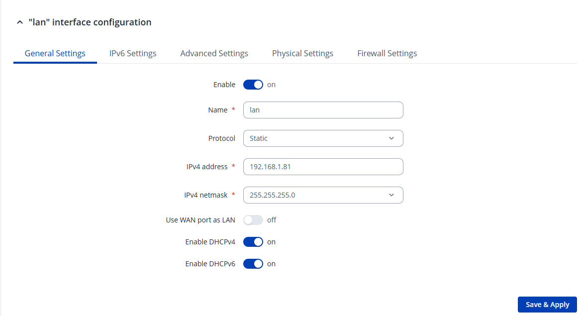 Coming back to the Master configuration, go to Network → LAN and configure the LAN interface as shown in the picture