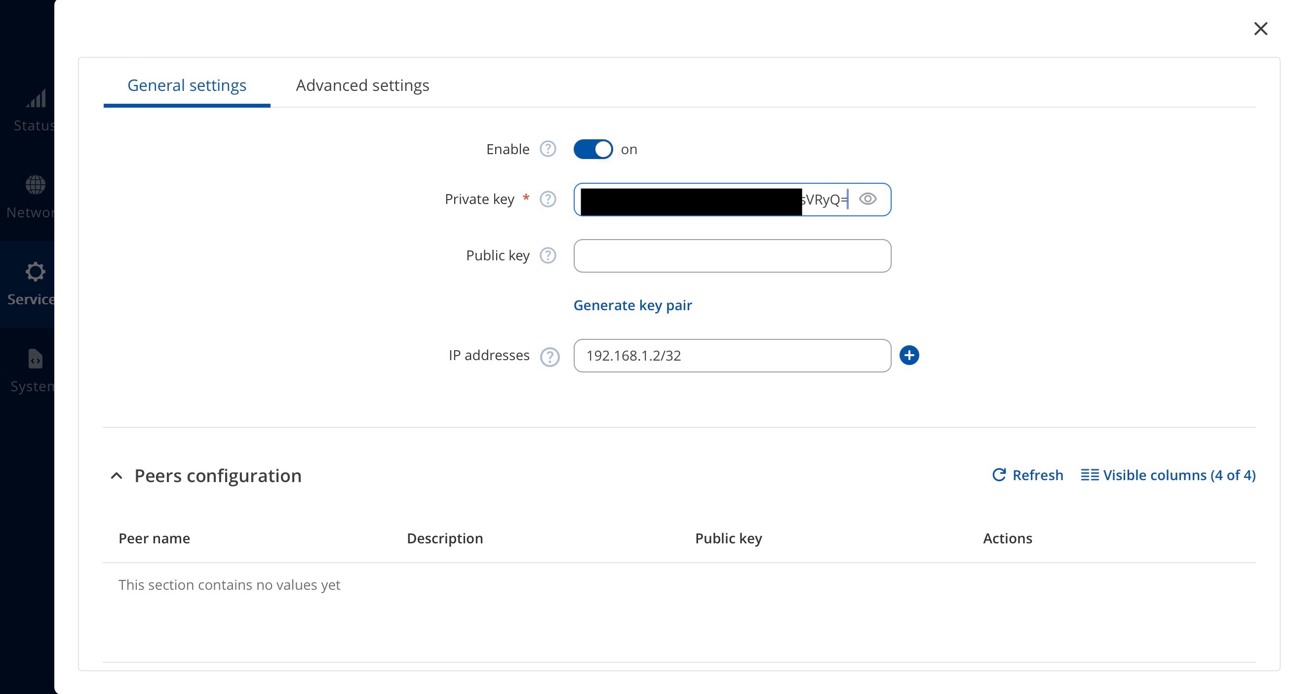 Hmm.. Could you provide screenshots of your WireGuard configuration from the RUTC50? Please do blur out any sensitive information (public/private keys, the public endpoint host IP address, etc.).