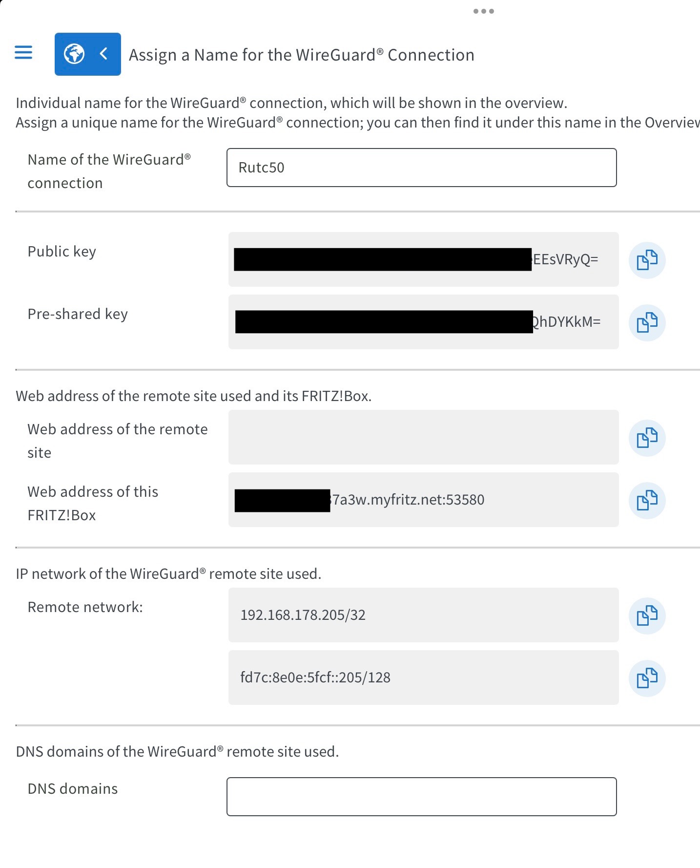 Followed your wiki, the rutc50 looks a bit different as well as my ‚Fritz!Box‘ screens, I am not sure I got everything right