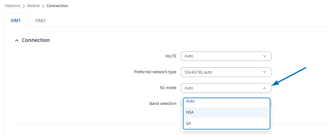 To clarify, you can already specify 5G mode by navigating to Network → Mobile → Connection page and in the 5G mode field, selecting your preferred NR mode: