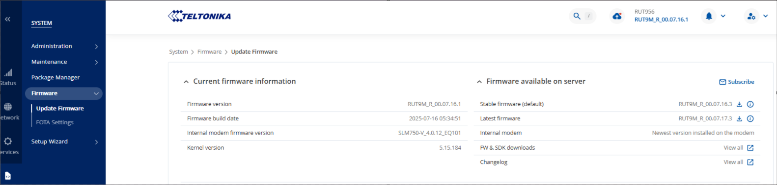 Meanwhile, from the “System → Firmware” menu, you can see both the latest and newest stable firmware versions, which you can download by clicking the button next to the firmware version: