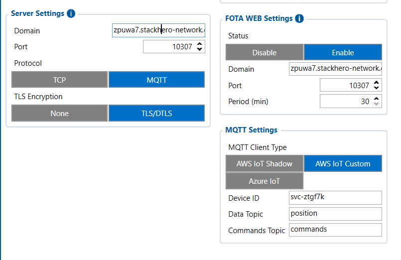 From the screenshot, it seems that the FMB900 is configured to send data to a custom MQTT broker (According to the Domain Name in the Server Settings), not AWS or Azure, right?