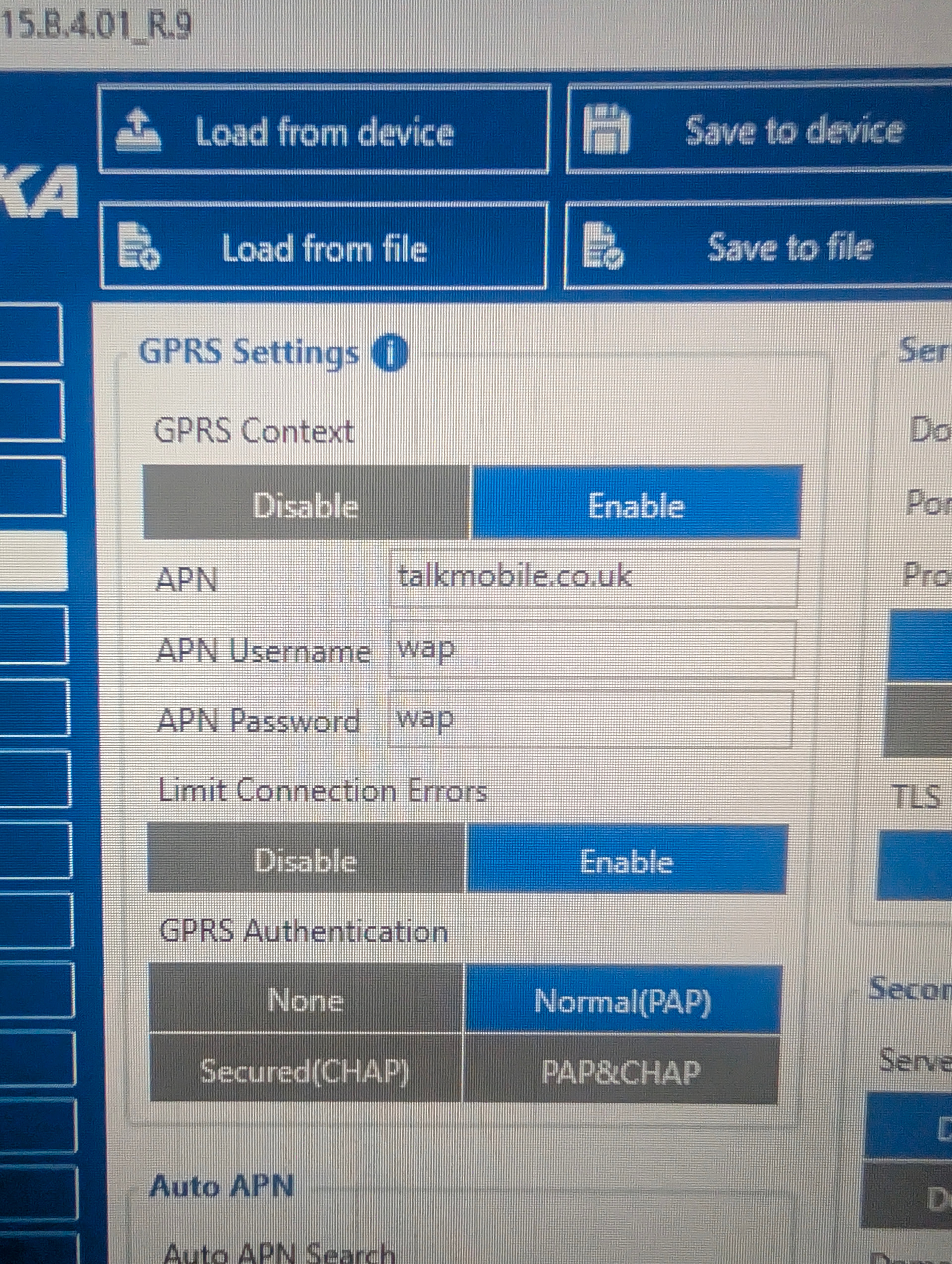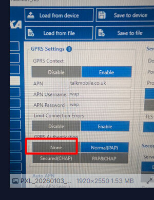 I have tried with none on GPRS authentication
