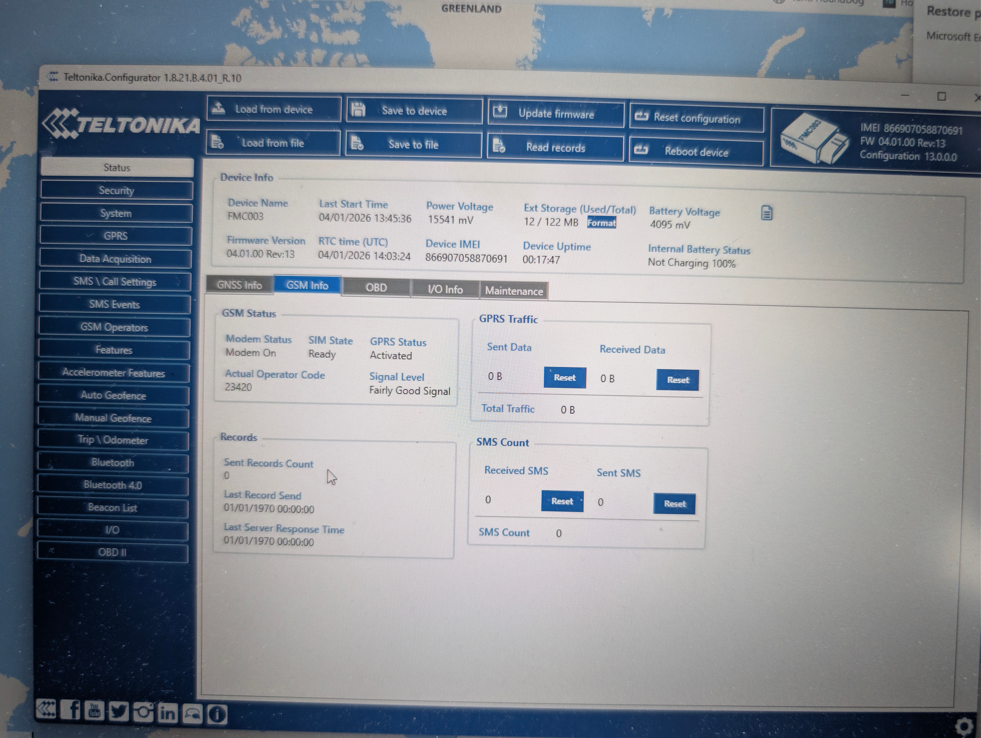 Hi all, I’m wondering if you can help, as of the 22nd of December my FMC003 has stopped sending data. I thought it was a SIM issue but have tested SIM in a mobile and it’s fine, I have tried another SIM card and although it goes activated on GPRS Status, it does not send any data.
