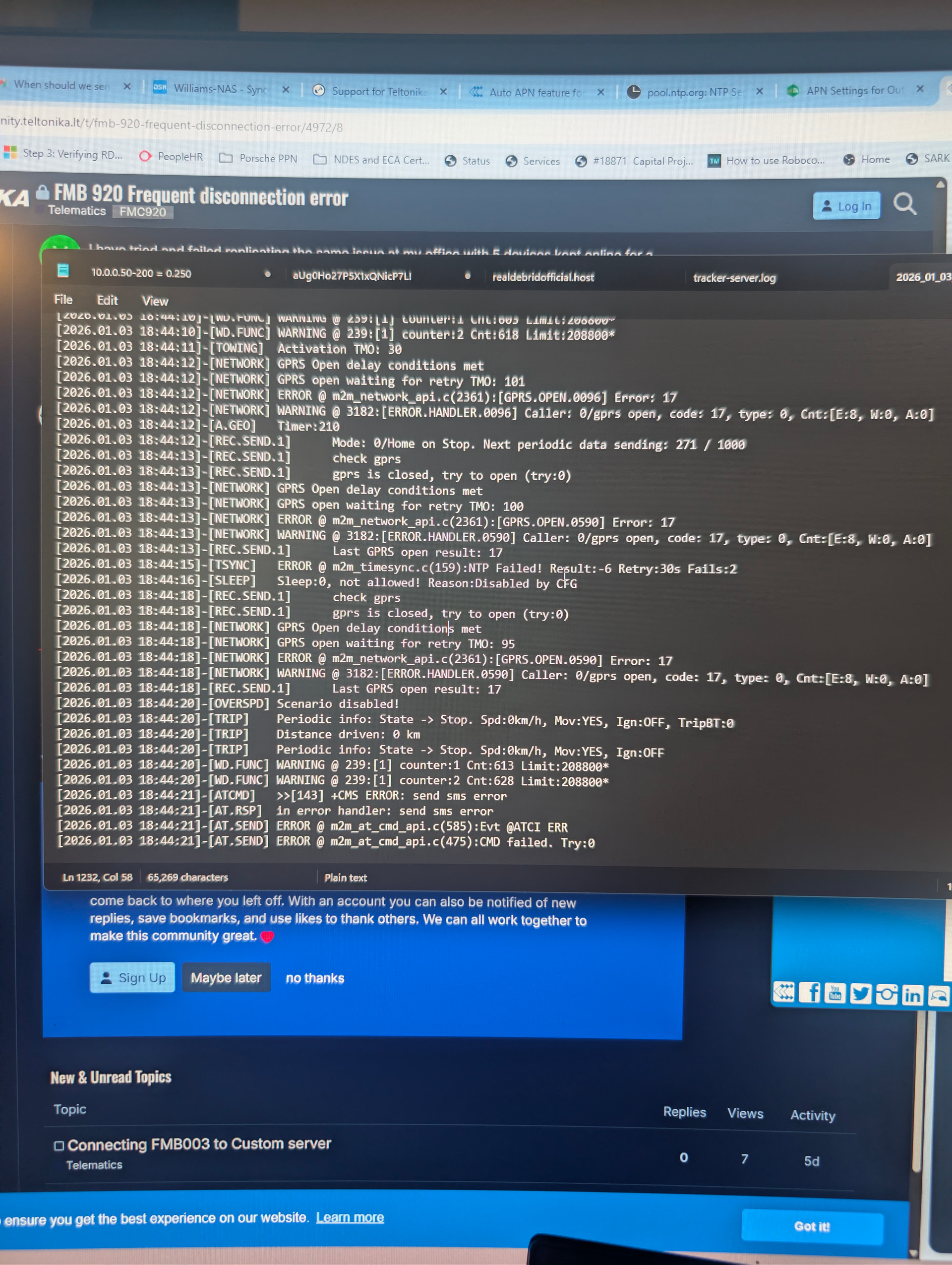 I have logs from two different SIM cards and APNs as well as two servers (duplicate). Nothing is working.