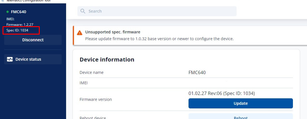Good day, we would like to inform you that we do not share firmware files here in the community forum, kindly ask assistance from the company who sells you the device they can directly ccoordinate with the local teltonika support from your region and ask for the SPEC ID1 firmware with the same base firmware that you have.