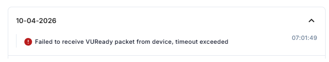 We already tried to update the firmware to the latest version available (03.01.01.Rev.15) but the error is still the same: Failed to receive VUReady packet from device, timeout exceeded.