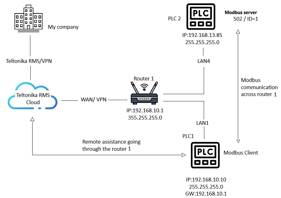 It looks like you want to set up your RMS VPN Hub in a way where you’d be able to reach all of these devices that are on your network (Router, both PLCs). We have a guide for how to configure the RMS VPN Hub: RMS VPN Hubs - Teltonika Networks Wiki