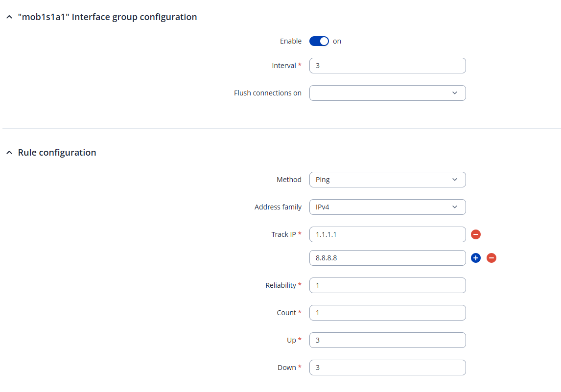 Status / Routes / Static shows wan with a metric of 1 and mob1s1a1 with a metric of 2. Yet every hour, with no user traffic passing through the device, the RUTX11 is sending about 450KB of data to the cellular network and receiving 1.28MB of data from the cellular network. That seems excessive for simply doing a ping to make sure the network is reachable.
