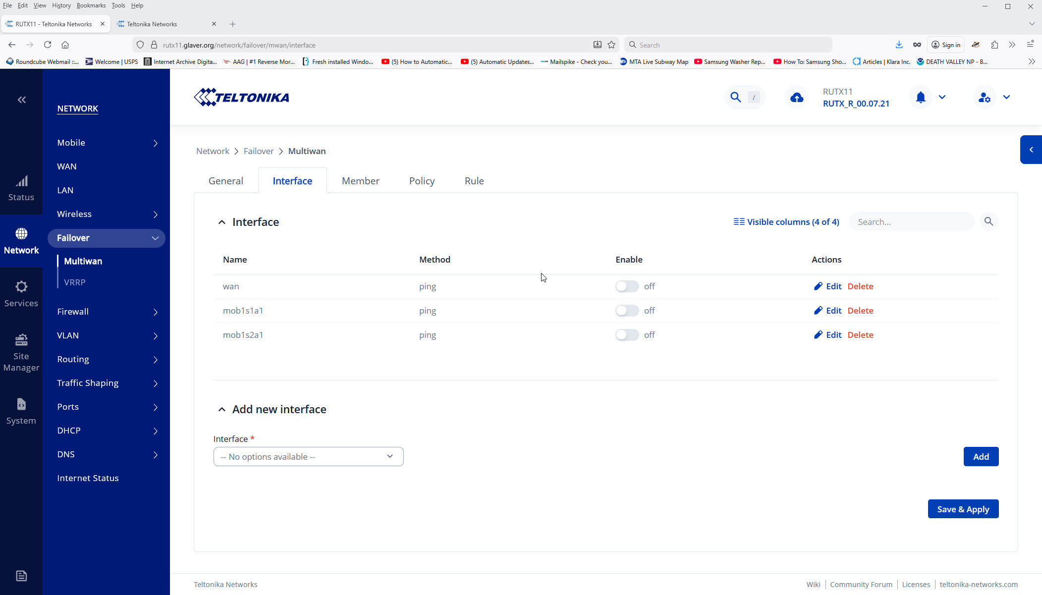 The RUTX11 is running firmware RUTX_R_00.07.21