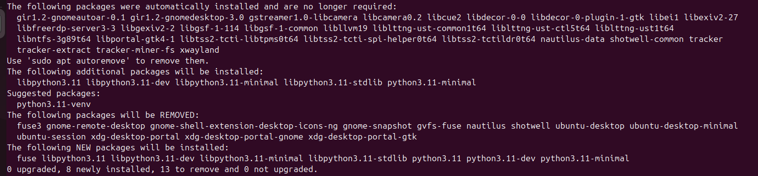 the message is reported about the need to uninstall, among others, the package: ubuntu_desktop.