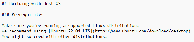 If you choose to build on a host operating system, compatibility is guaranteed with Ubuntu 22.04 .