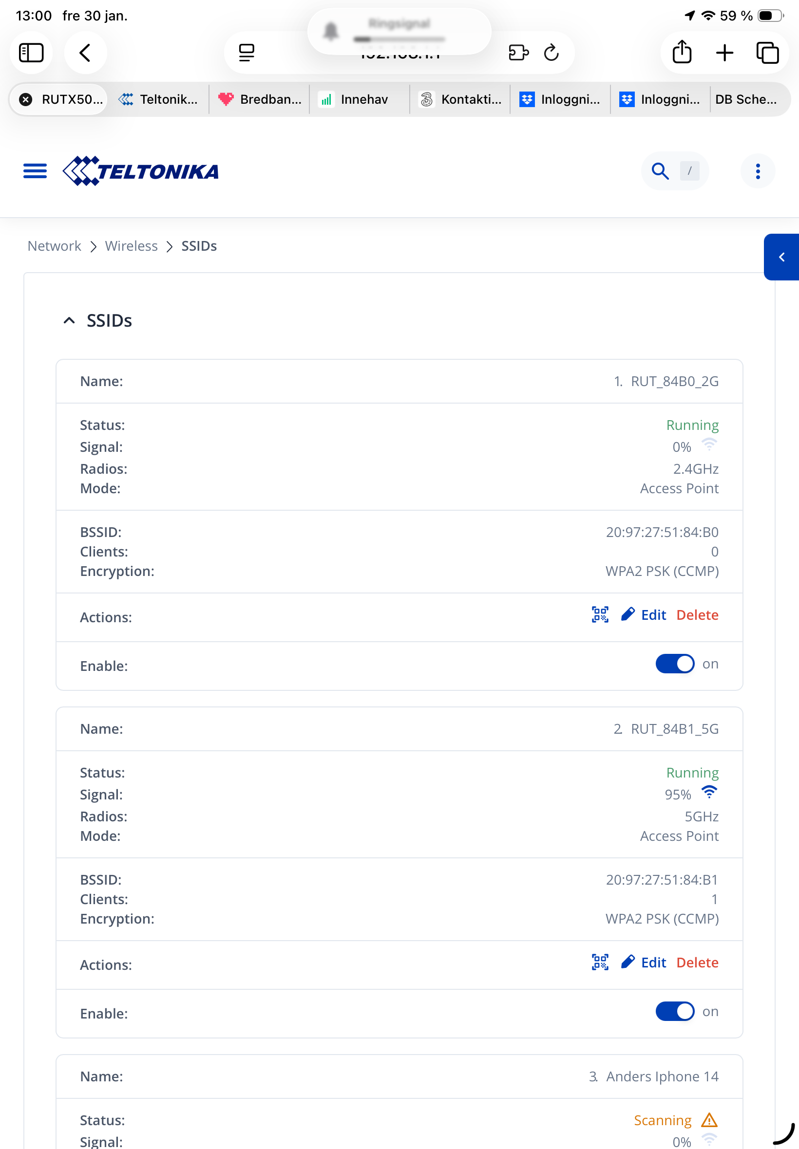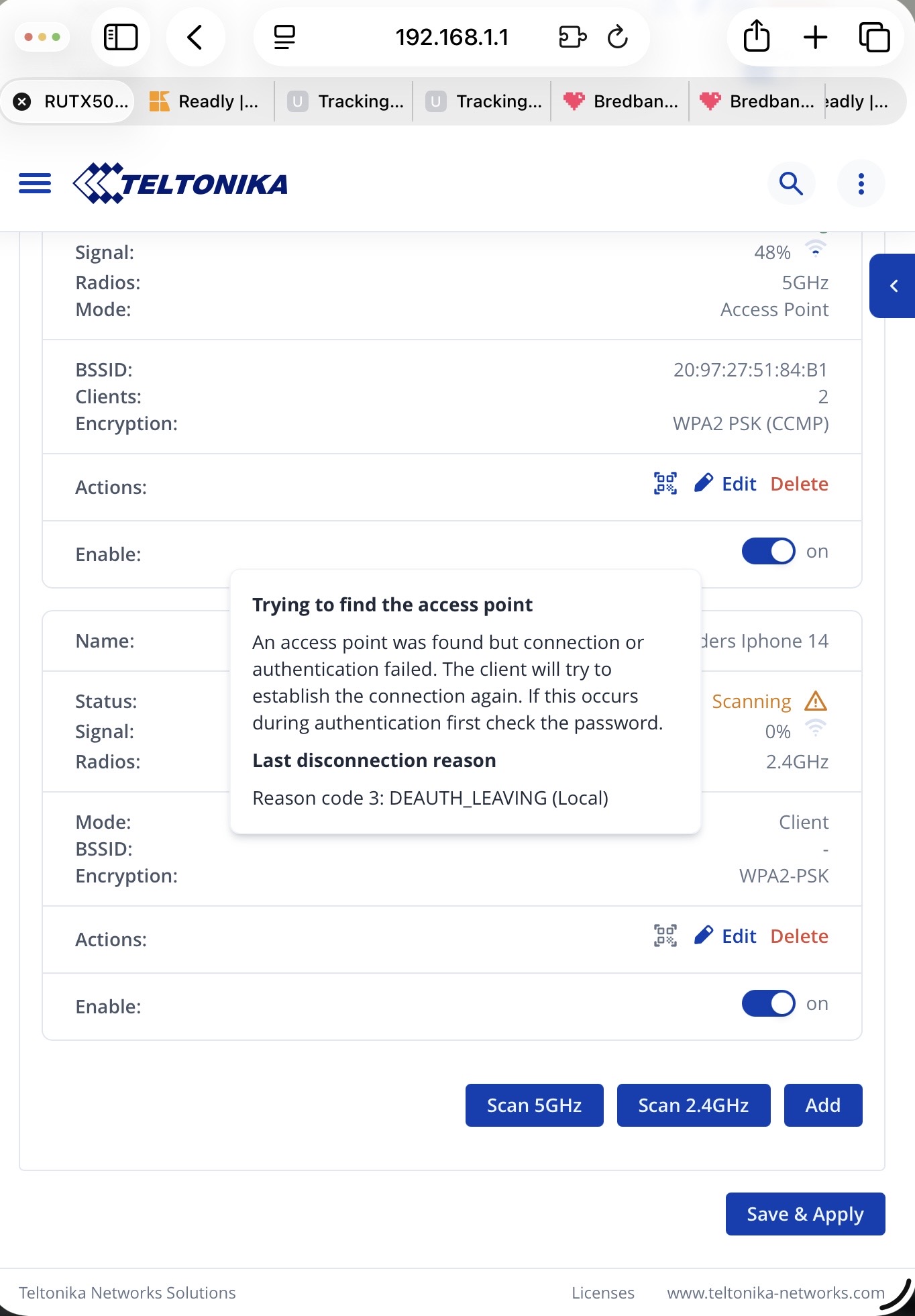 As you can see in the picture the 2,4 GHz net shows 0 signal strength, the same as my phone att the bottom of the picture.