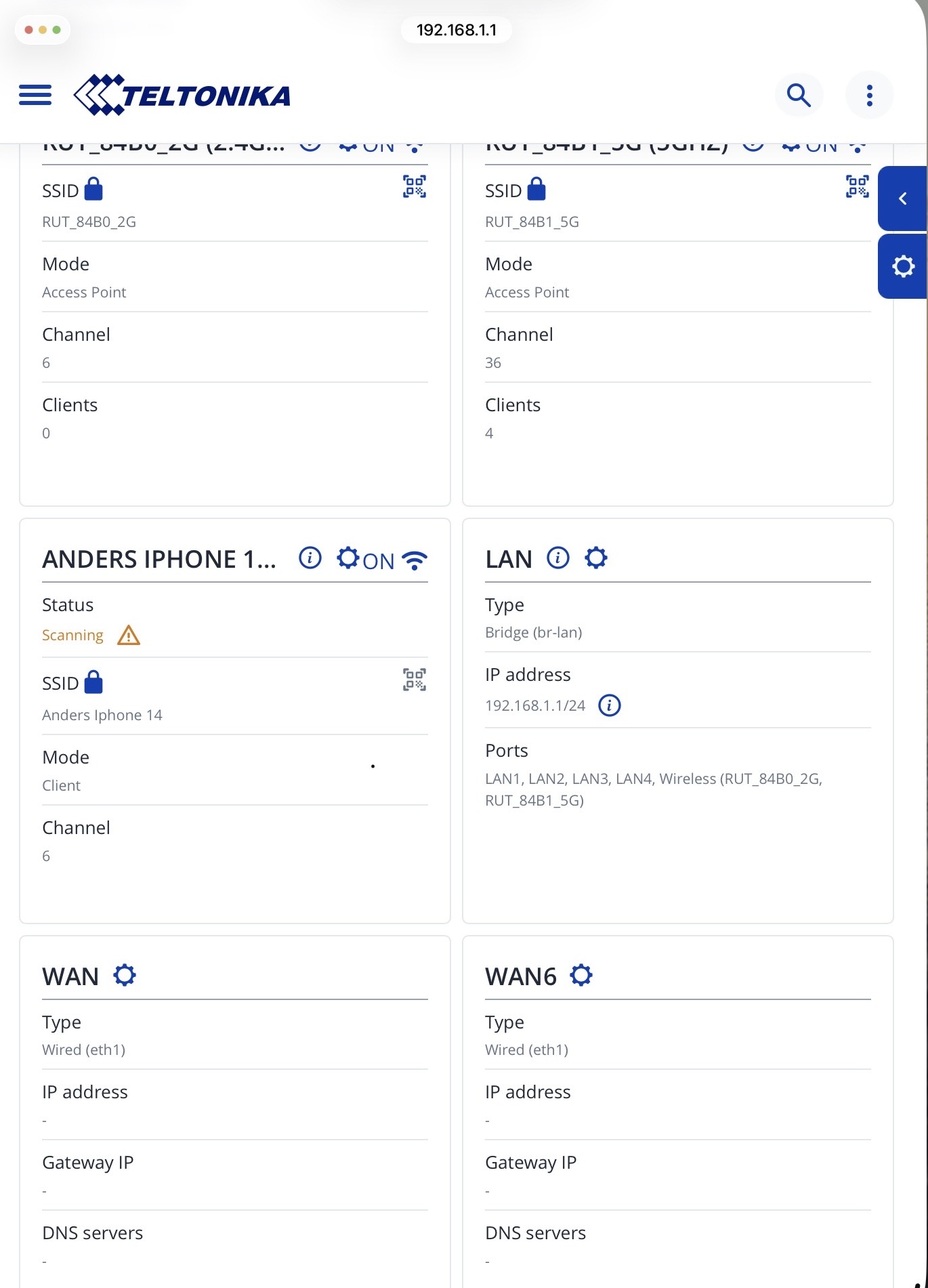 The 0% signal strength on the first wireless interface indicates that there are no clients currently connected to that band.