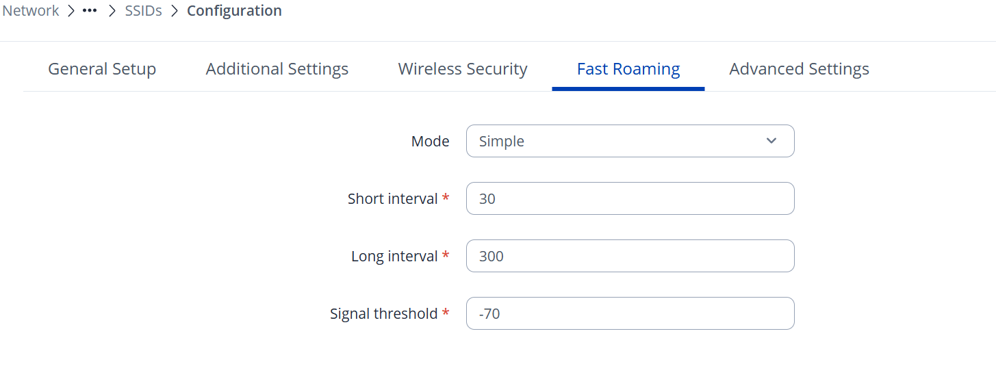 If the issue persists, please try adjusting the signal threshold under the Fast Roaming tab. You may need to experiment with both higher and lower values to see which works best. Additionally, you can try changing the mode from Simple to Learn .
