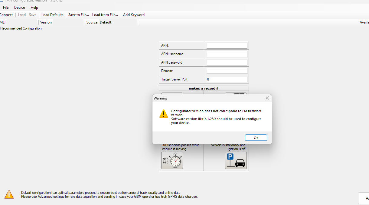 I suggest that you contact your Teltonika Sales Manager to request the Configurator Tool that’s compatible with the Firmware version currently running on the FMA120.