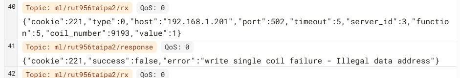 {“cookie”:2,“type”:0,“host”:“192.168.1.250”,“port”:502,“timeout”:5,“server_id”:2,“function”:5,“rcoil_number”:8204,“value”:1}