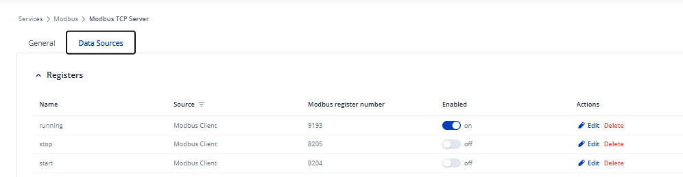 - Data to server connection to publish the Modbus TCP Client values to MQTT telemetry topic