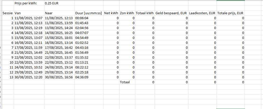 below is an extract of the data that I can download from the app, it only shows timing, no kwh