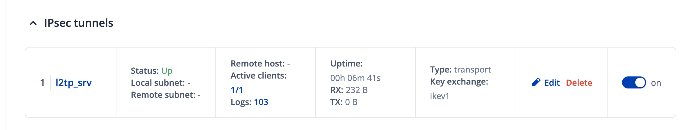 If i remove the IPsec connection that is bound to “transport” to my L2TP server config, it changes to up