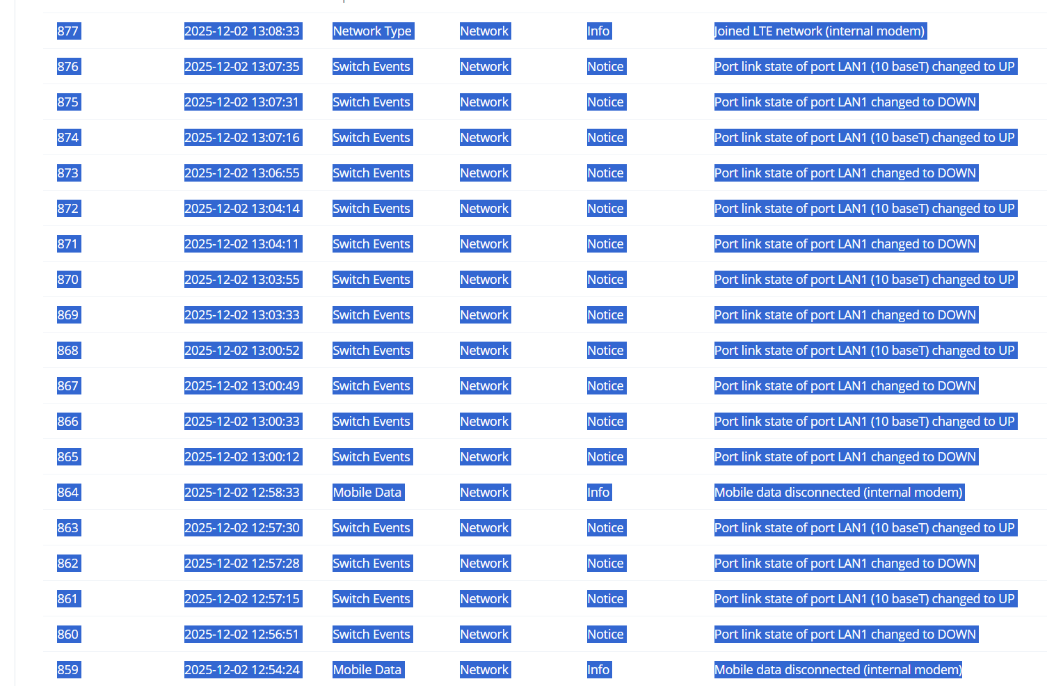I use about 30 RUT241. In the last 10 I ordered, I have a weird problem. 1 or 2 times a day I have devices that disconnect and reconnect randomly. See the log bellow. To solve this problem, I connected the RUT241 on a wifi. I don’t have acces to the wifi on all of my site so I need I fix to this problem. I run RUT2M_R_00.07.19.2.