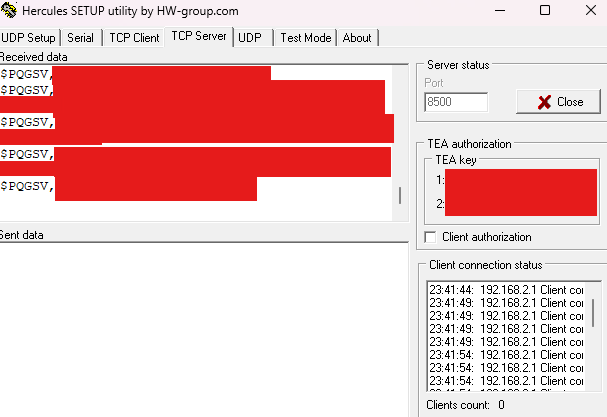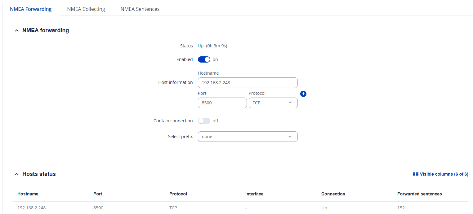 That said, I can confirm that NMEA forwarding works correctly on the router with a setup like the one below, using an end device as a TCP server, as shown in the picture: