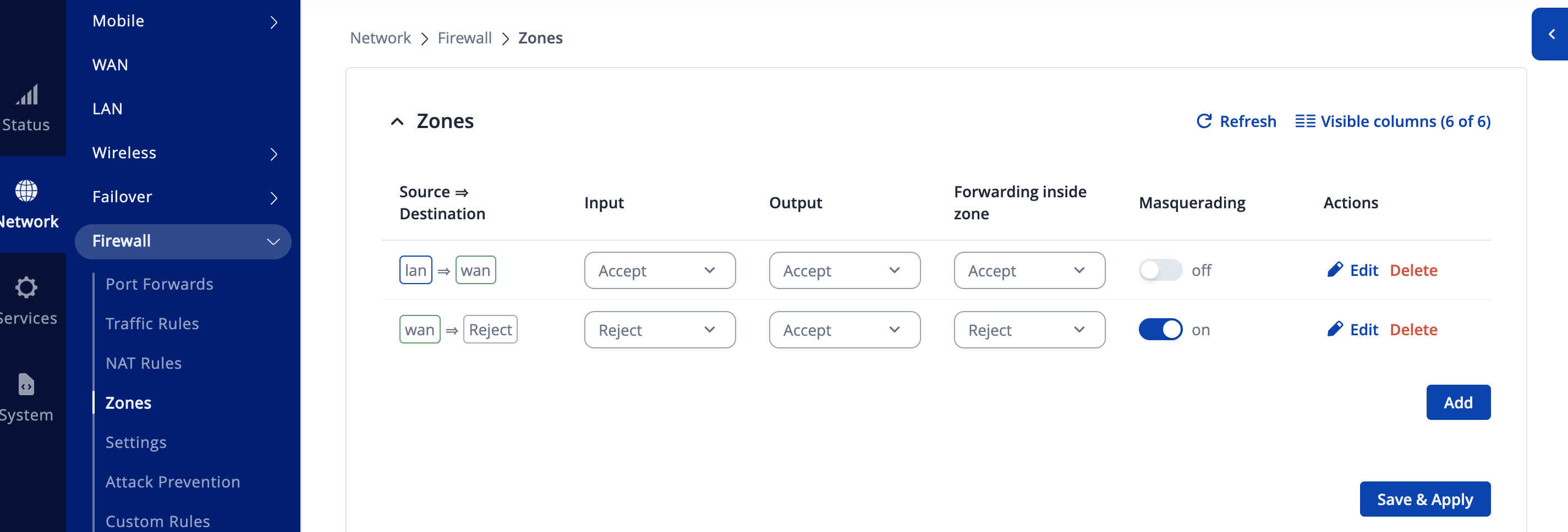As a reminder, here are my “trafic rule” settings and “Zone” settings.