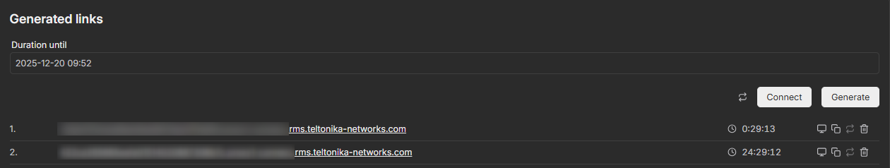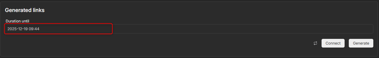 If the downloads are failing due to an expired link, you can extend the link’s validity by clicking on the date in the “Duration until” field and setting a longer lifetime. By default, the link expiration is set to 30 minutes.