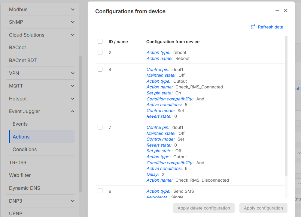 I also tried to upload the configuration. But the action type “Reboot” is not available on RMS (as shown in the picture from my last post).