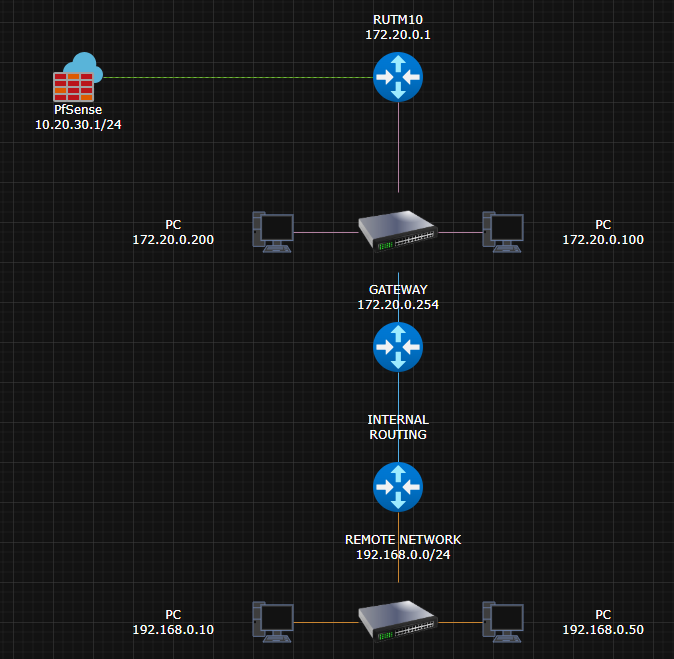 You’re right - I’ve created a network topology. Green is the IPSEC, pink is the RUTM10 LAN and orange is the remote network we need to reach from the PfSense.