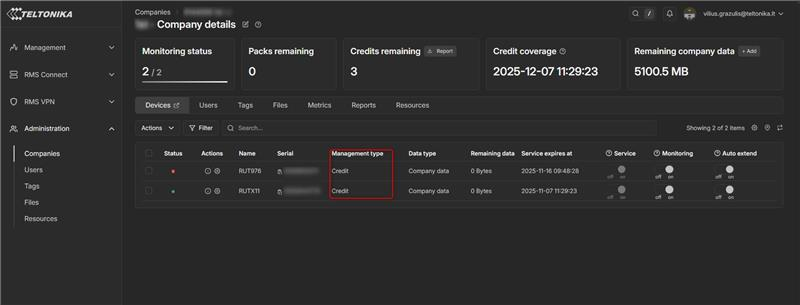 - We have purchased a 10-year RMS Management Pack for this device, and we still have 7 credits.