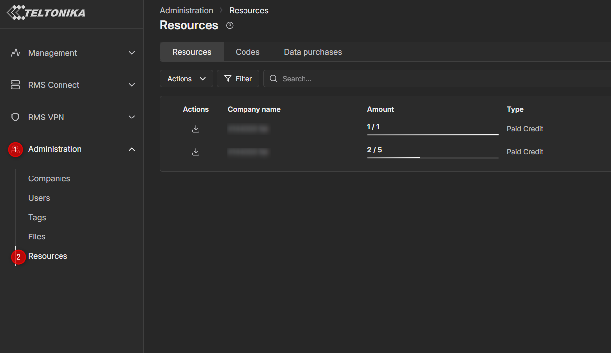 You can check if the resources were added to your device by going to Administration → Companies, then select your company and press on View company details button. Then you should see a similar window: