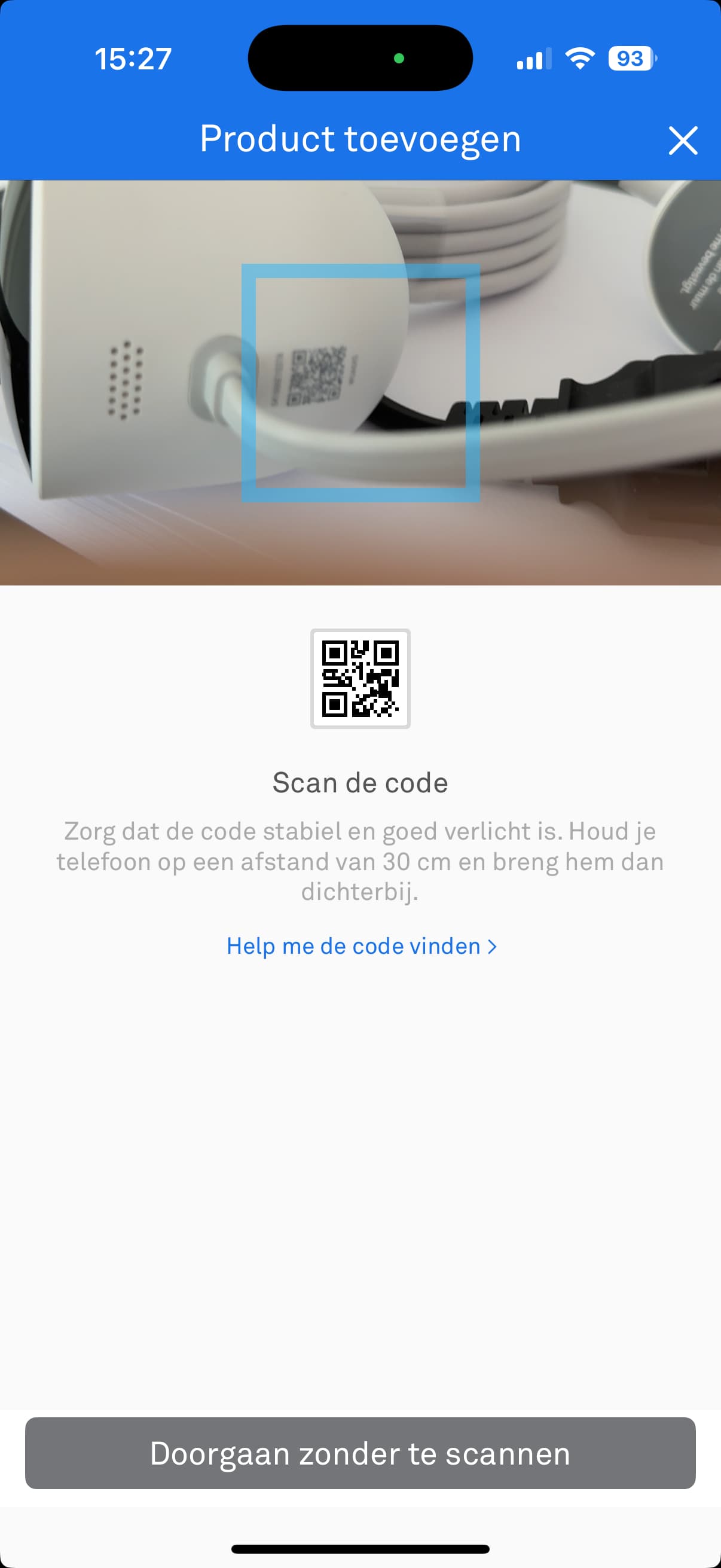 The connection to the cam is made through the Nest-app. After scanning the QR code, it makes connection via bluetooth and starts the process tot connect to wifi.
