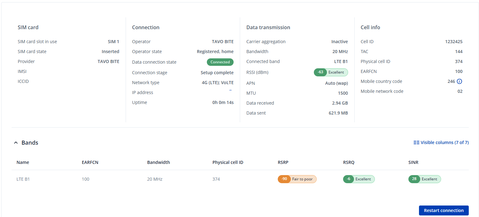 Yes, all my trials have been using Mobile WAN. In the status-network-mobile you could see that it got connected, ip address, time connected start increasing…. and counting about 10 seconds it got disconnected again.