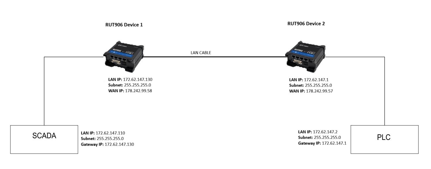 I am trying to create a network between 2 RUT906 devices with firmware version RUT9M_R_00.07.18.3 according to the attached architecture.