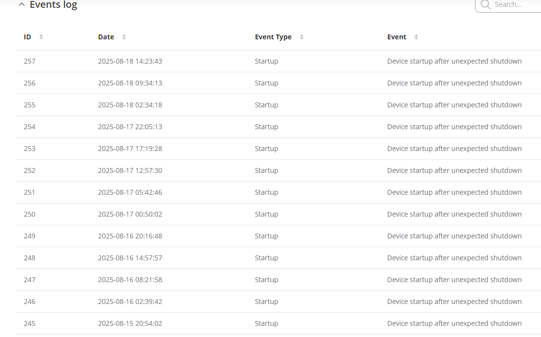 Can anyone explain what “Device startup after unexpected shutdown” entails (e.g. power issue, CPU/RAM issue, etc). Any troubleshooting tips are also appreciated.