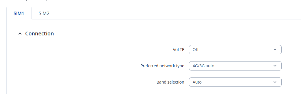 - Go to Network → Mobile → Connection.