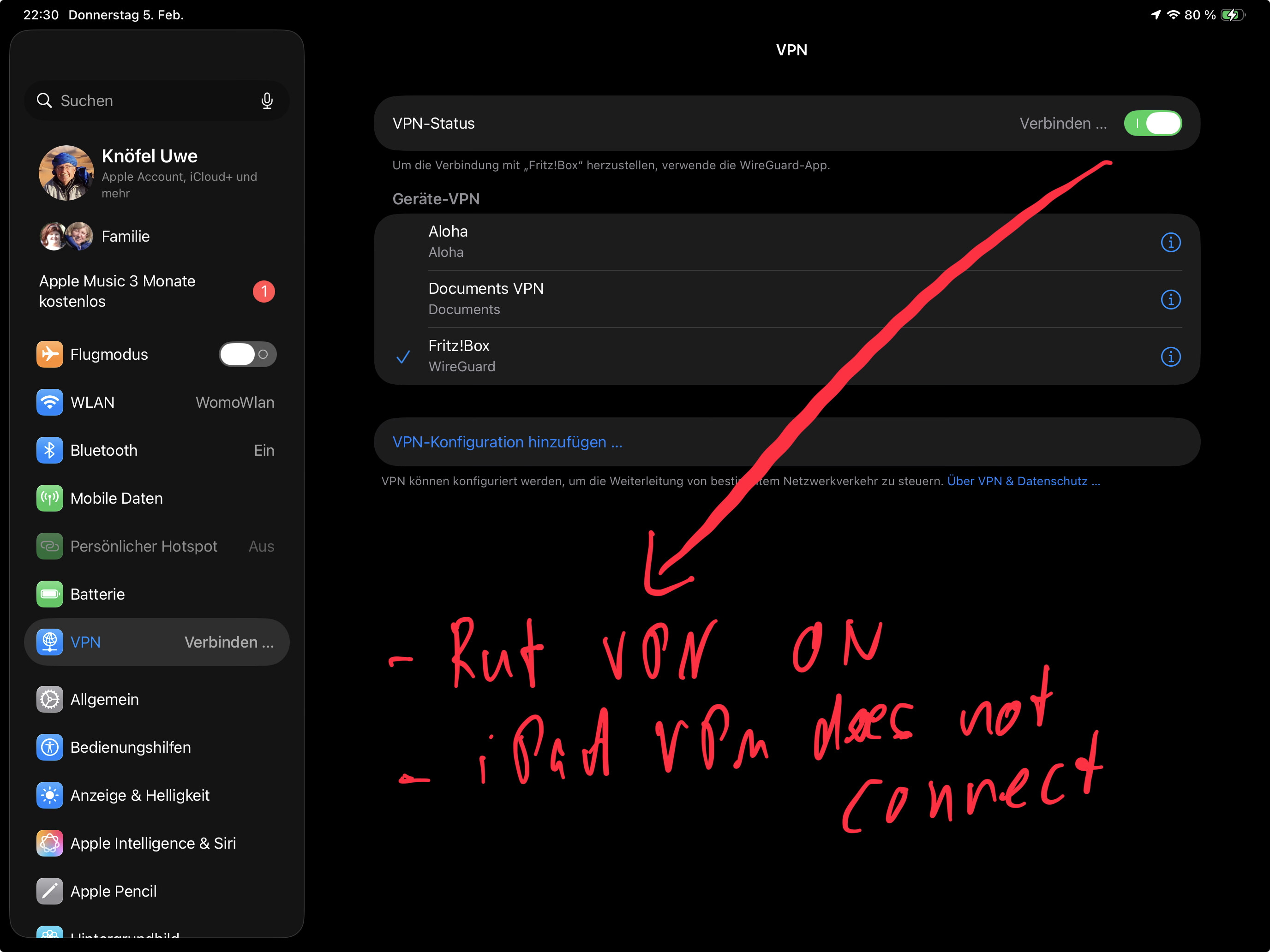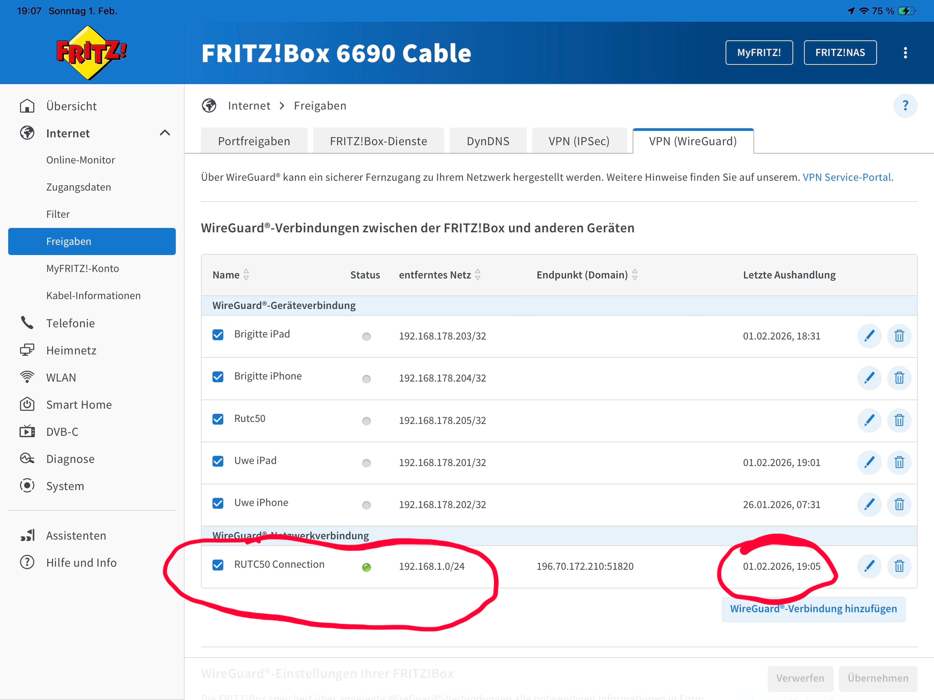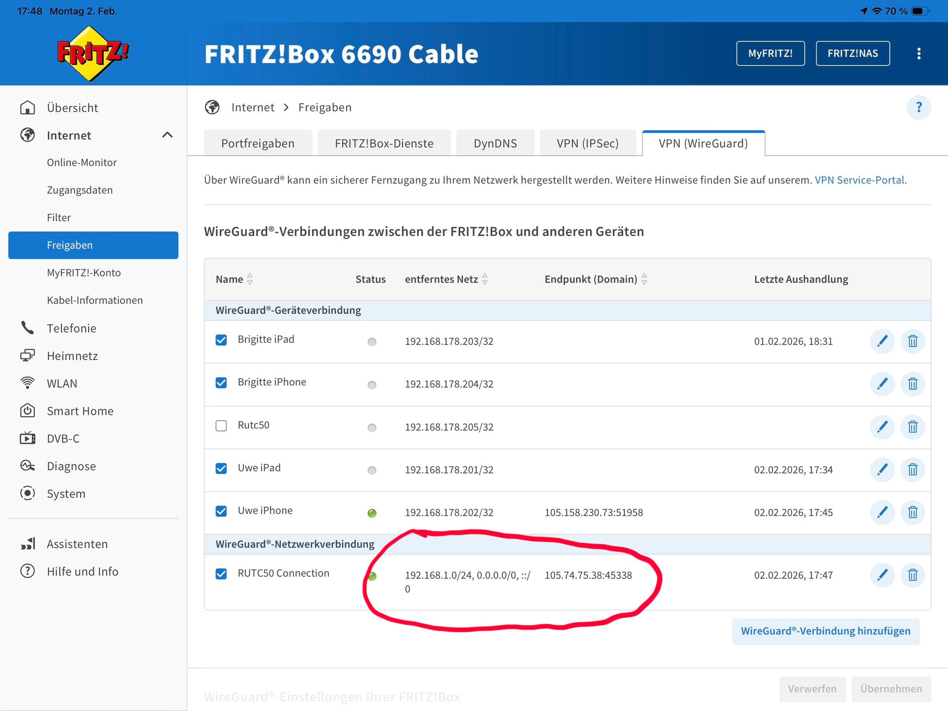 I can reach my FRITZ!Box both with Rutc50 and / or iPad VPN