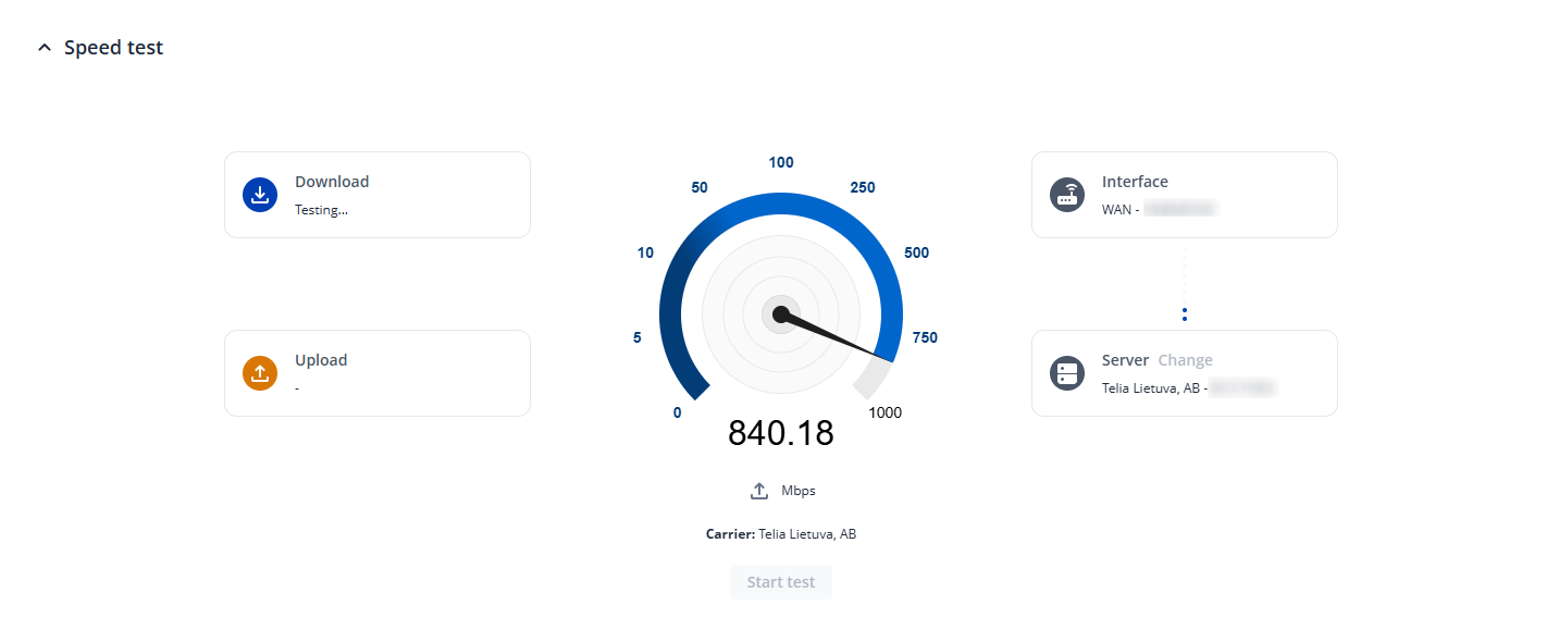 The second issue is that the speed test page only offers to let me perform a speed test on the WAN interface and not on the cellular interface (I think - the page says “Interface: WAN” on the right, but under the speed dial it says “Carrier: -”.