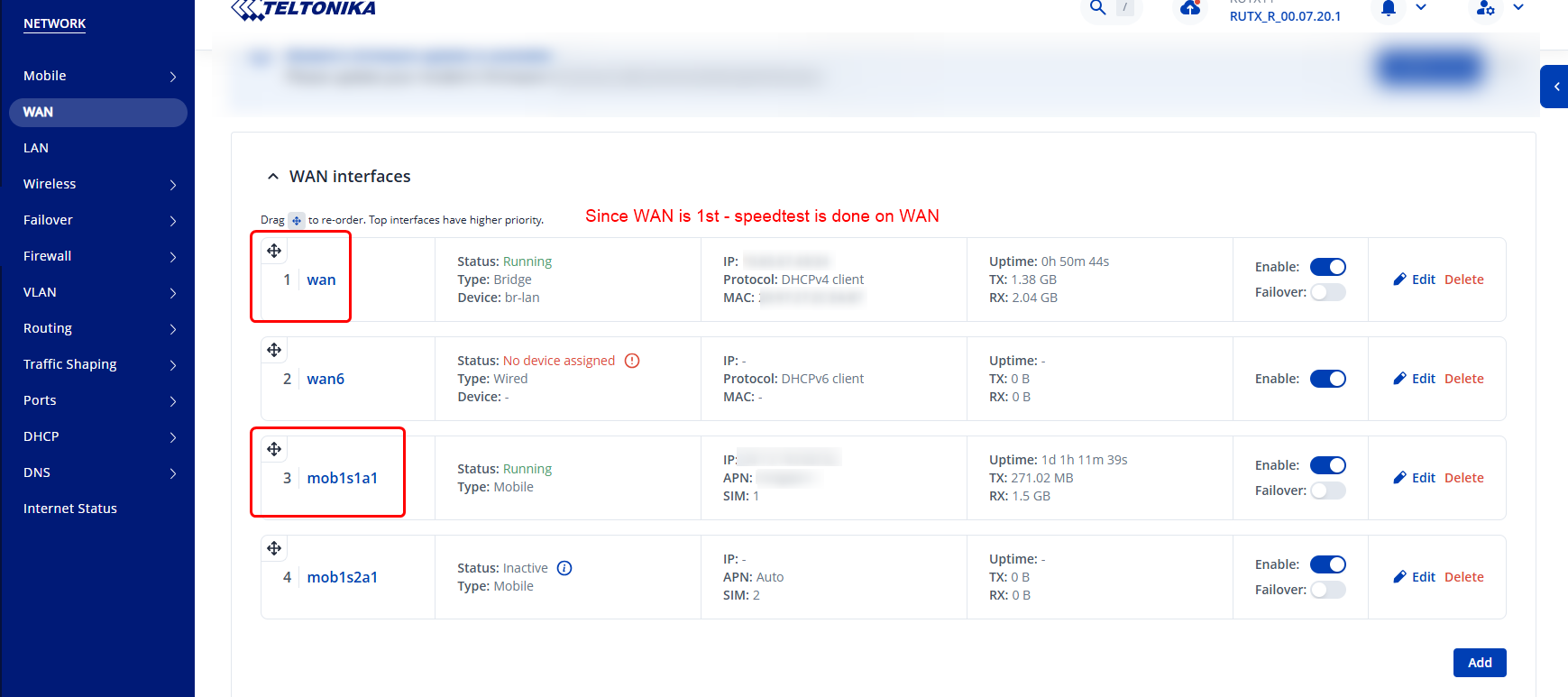 I would also suggest an enhancement so that both the CLI and the WEB UI allow a choice of testing on any of the enabled interfaces (WAN, Mobile SIM 1, WAN IPv6, and Mobile SIM 2 in my case).
