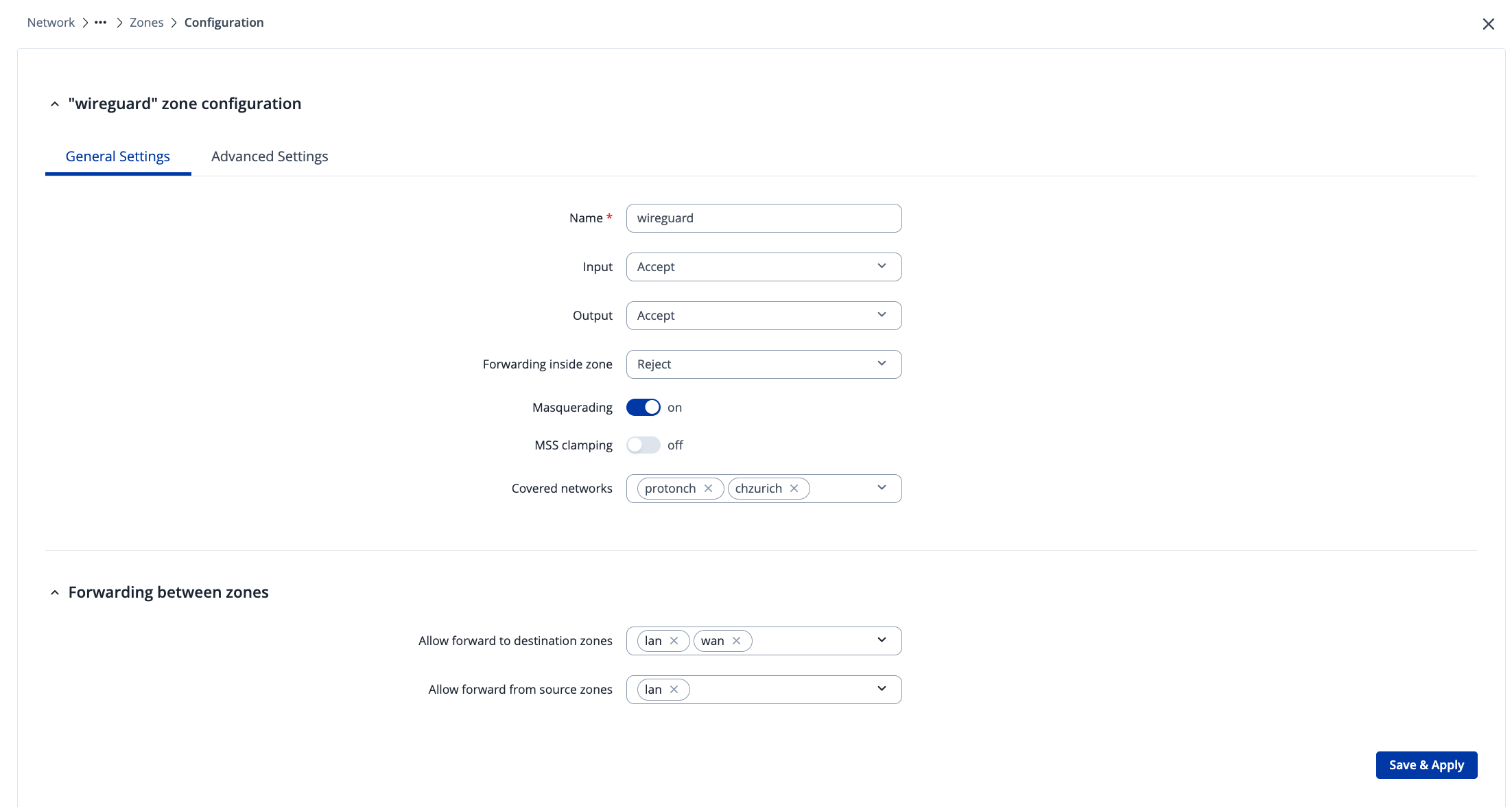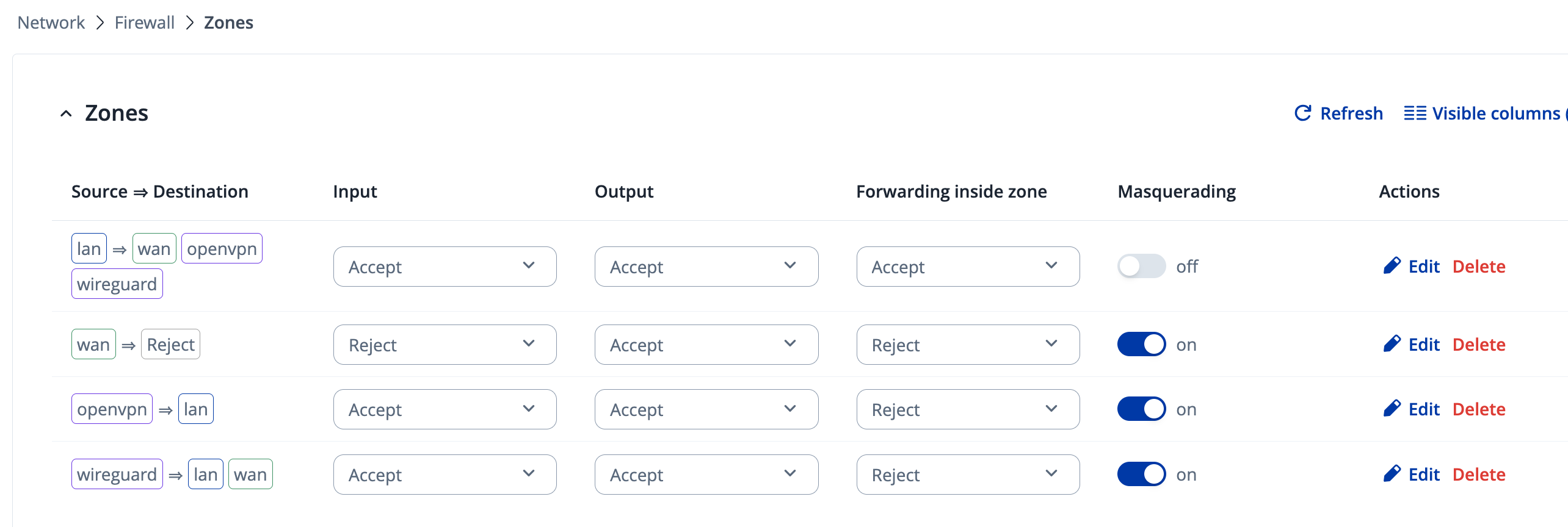 wireguardzone: ACCEPT / ACCEPT / ACCEPT, masquerading enabled -