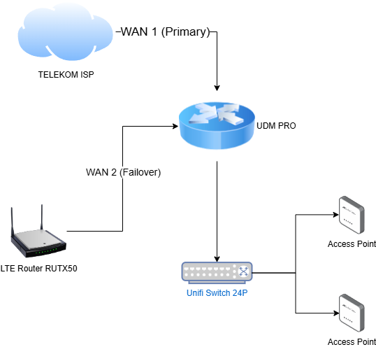 I hope my picture helps you. I’m no network expert, but it should make it clear what we want. As you already said, we want to use its LTE connection as a backup internet source for the UDM.