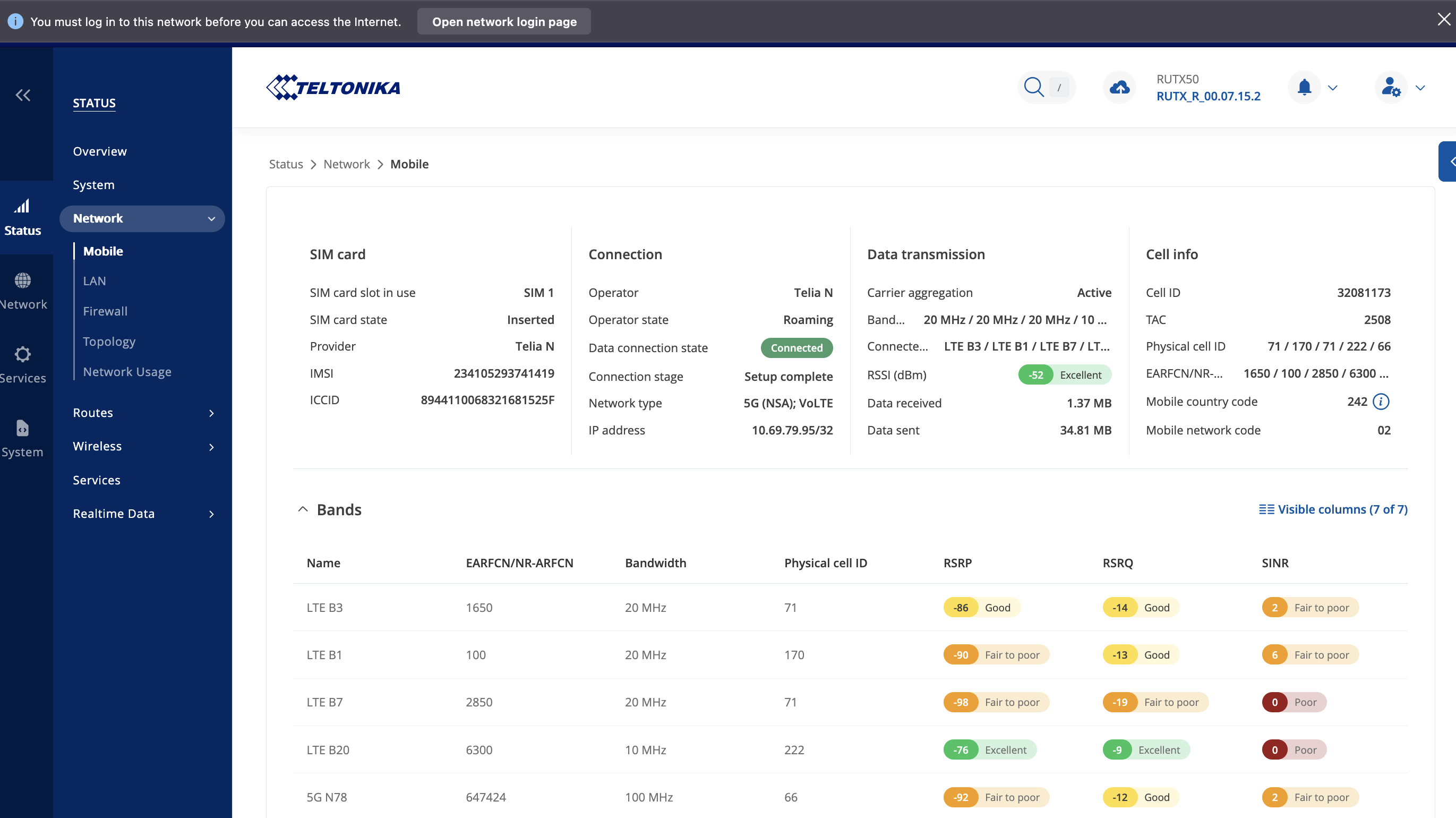 My RUTX50 just won’t connect to the mobile network. The connection status indiicates it is connected and shows no error.
